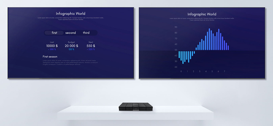 شما قادر خواهید بود تنها با یک کلیک، صفحه‌ی نمایشگر قدیمی خود را به دستگاهی حرفه‌ای برای به نمایش گذاری محتوا در جلسات تبدیل کنید همچنین با خروجی 4K و فریم ریت 60 هرتز از کیفیت بالای ویدئو و رنگ‌های شارپ و زنده لذت ببرید. تکنولوژی H.264 decoding تصویرسازی مناسب و بدون خللی هنگام به نمایش درآمدن ویدئوها، به شما پیشکش می‌کند. توانایی پخش محتوا در دو صفحه‌نمایش به‌صورت هم‌زمان نیز از دیگر ویژگی‌های این محصول به شمار می‌رود. پشتیبانی از extended screen mode به‌منظور سهولت برای دسترسی به فایل‌های شخصی و محتوای مورد ارائه به‌صورت هم‌زمان از قابلیت‌های ضروری برای کاربران می‌باشد.
