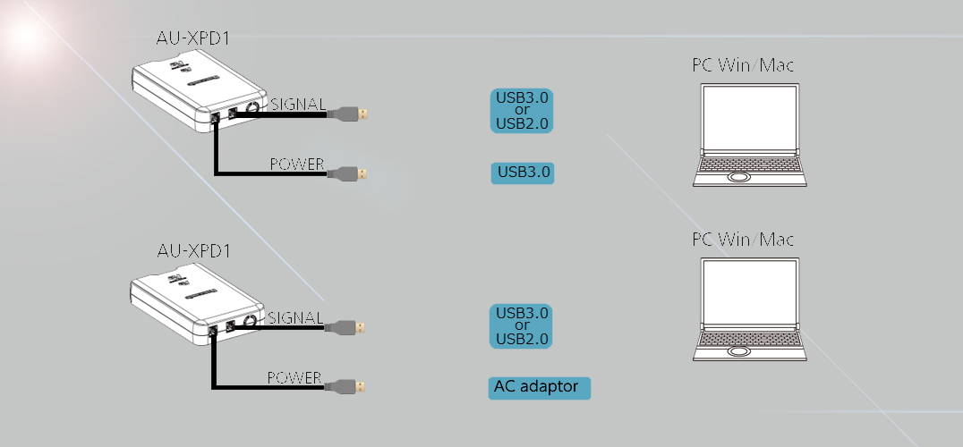 درایو کارت حافظه پاناسونیک مدل AU-XPD1 ، یک محصول کوچک و سبک با یک ورودی P2 همچنین یک رابطUSB 3.0 برای انتقال داده‌هاست که سرعت انتقال داده با کارت express P2 تا 2.4 گیگابایت بر ثانیه می‌باشد. علاوه بر این دو پورت، دارای دو پورت USB 3.0 یکی برای انتقال داده و دیگری برای تغذیه دستگاه از رایانه و یا آداپتور برق متناوب می‌باشد. لازم به ذکر است برای رایانه‌هایی که از پورت USB 3.0 پشتیبانی نمی‌کنند، این دستگاه با پورت USB 2.0 نیز سازگار می‌باشد.
