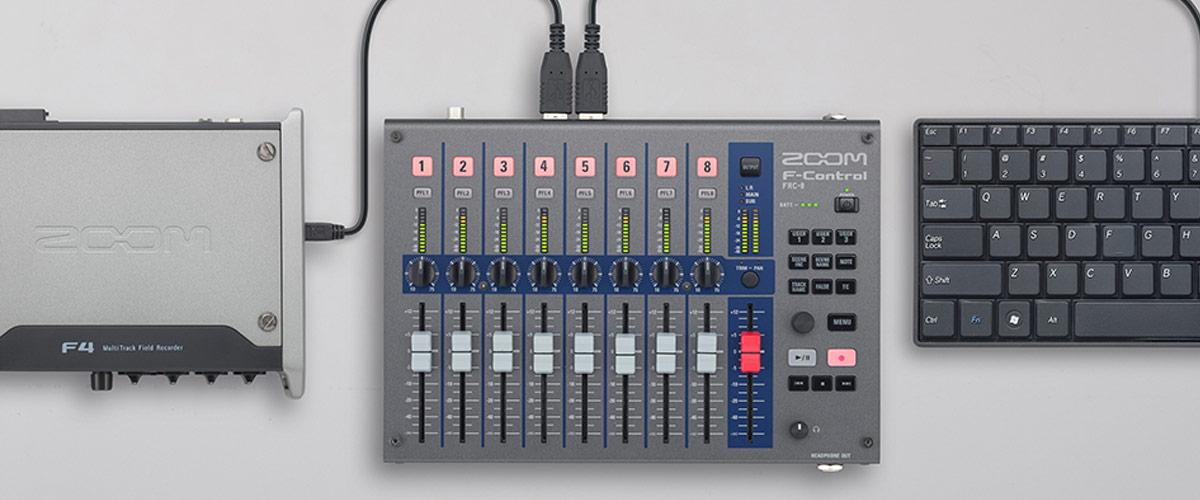 دستگاه F-Control ، یکی از ابزارهای ضروری برای میکس و ترنسپورت رکوردرهای سری F کمپانی ZOOM میباشد. FRC-8 در حقیقت یک میکسر است تا با متصل شدن از طریق یک کابل USB به رکوردر های سری F ، مانند F6 و F8n ، صدابرداران آزادی عمل و تسلط بهتری بر روی پارامترهای رکوردر خود داشته باشند. این کنترلر فرایند ضبط و میکس را به وسیله 8 فیدر 60 میلیمتری انجام میدهد. با استفاده از این کنترلر فرایند پن کردن، تنظیم ترک ها و PFL برای مانیتور کردن کانال ها در دسترس کاربر خواهد بود. هر کانال بر روی این کنترلر دارای چراغ LED برای نمایش میزان سیگنال موجود در ورودی است. با استفاده از این کنترلر کاربر میتواند رکورد های خود را به وسیله دکمه ادیت Track Scene برای وارد کردن Meta Data مدیریت کند.