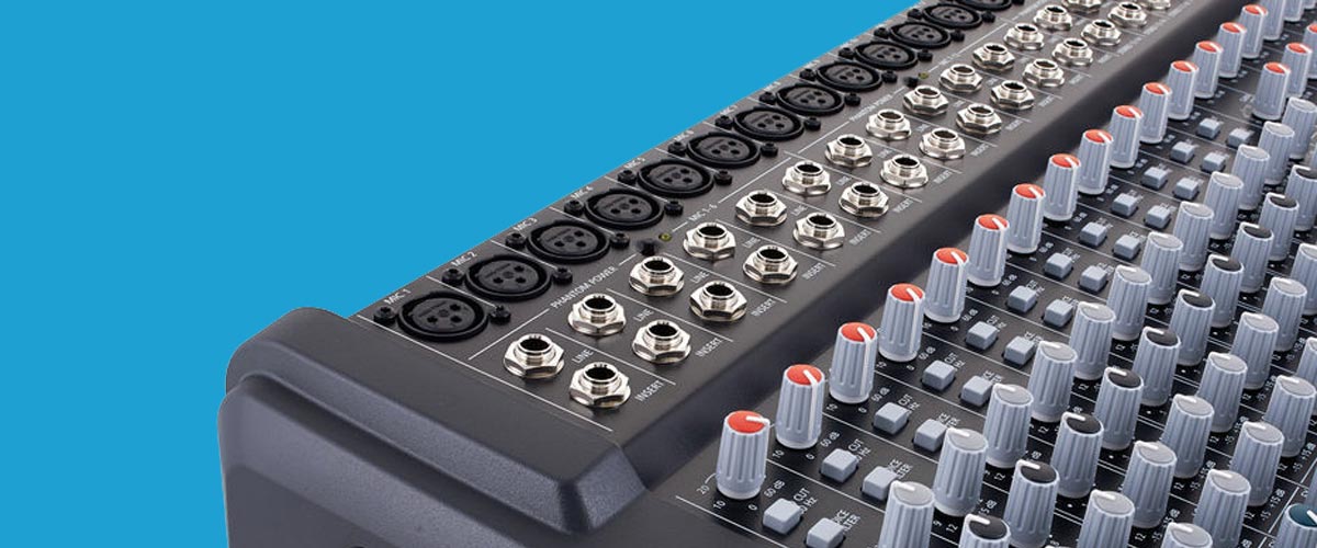 دارای 16 کانال ورودی شامل 12 ورودی میکروفون/لاین، 4 ورودی میکروفون/ لاین استریو