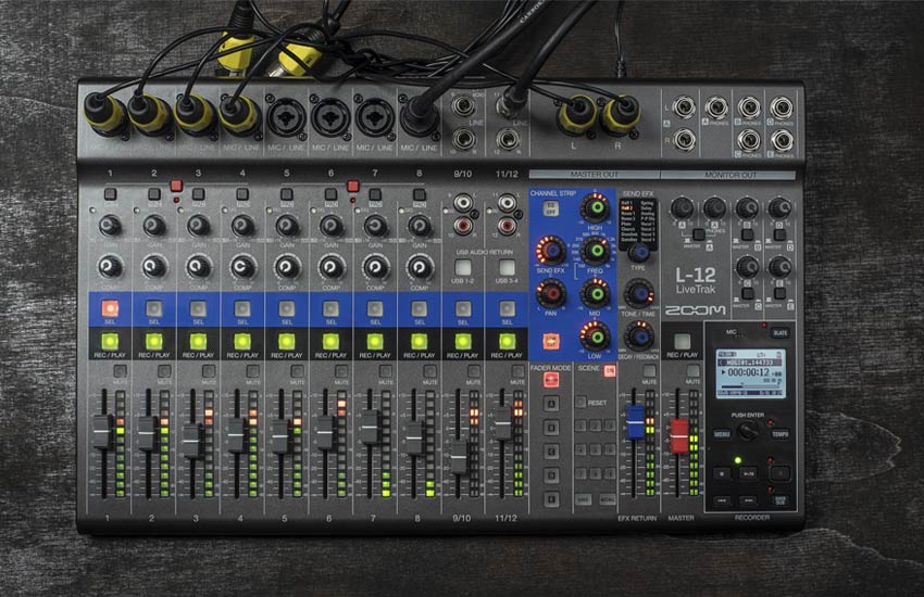 رکوردر مولتی‌ترک LIVETRAK L‑12 زوم یک محصول چندکاره ایده‌آل برای استفاده در پروژه‌های صوتی است. این دستگاه علاوه بر اینکه یک رکوردر 12 کانال است (8 مونو و 2 استریو) ، به‌عنوان یک میکسر ، دستگاه مانیتورینگ و پلی‌بک نیز انجام‌وظیفه می‌کند. در کنار این‌ها از LIVETRAK L‑12 زوم حتی می‌توان برای ریمیکس اصوات ضبط‌شده نیز استفاده کرد. همچنین به‌طور هم‌زمان به رکورد و میکس صداهای دریافتی بپردازد، درحالی‌که قابلیت ضبط مجزای هریک از کانال‌ها را دارد.
